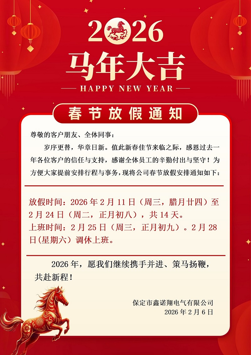 春節(jié)假期內(nèi)我公司不再提供詢價(jià)、報(bào)價(jià)及其他技術(shù)支持服務(wù),不便之處,敬請(qǐng)大家諒解。在春節(jié)休假期間,如有緊急事務(wù),請(qǐng)聯(lián)系薛 17731258736,謝謝!